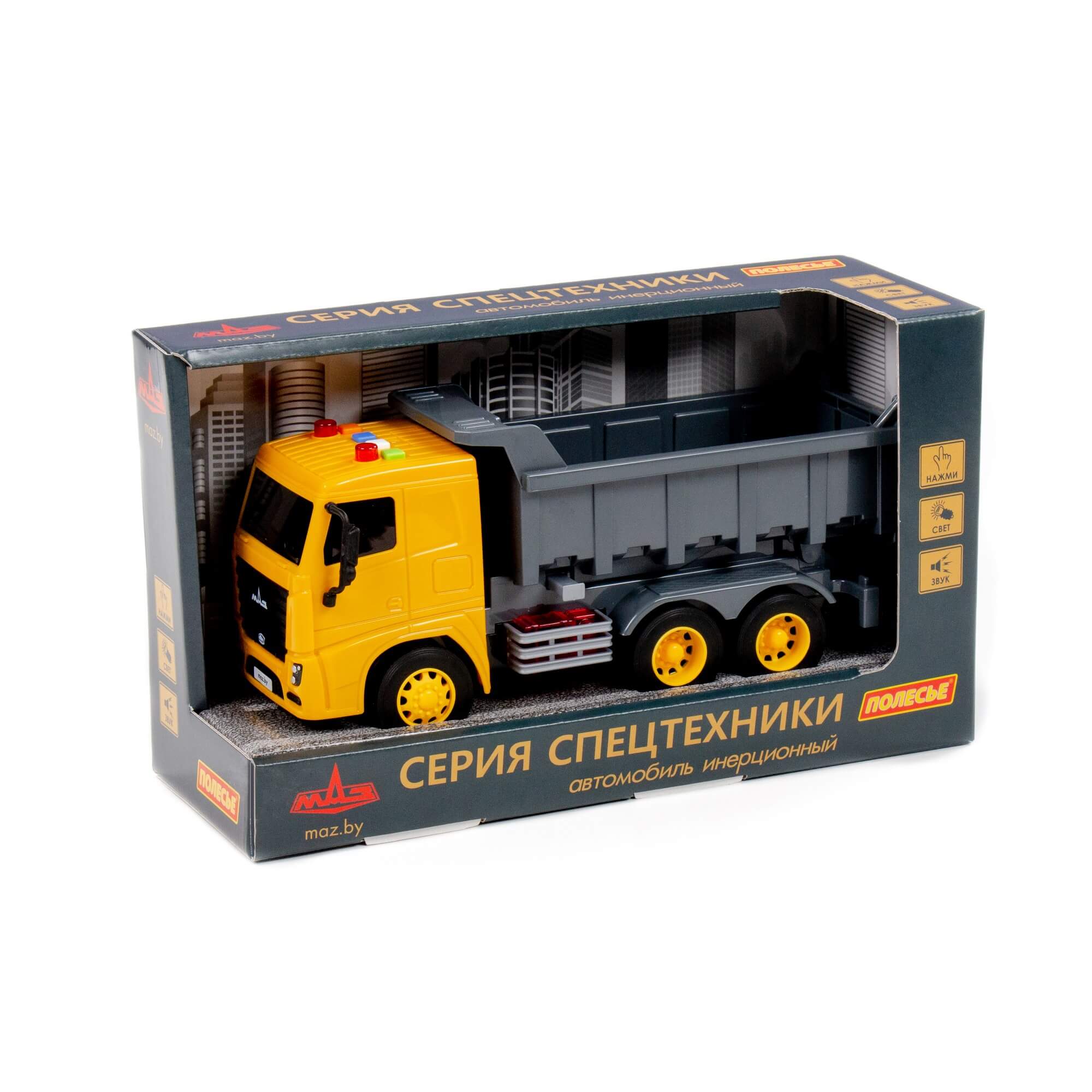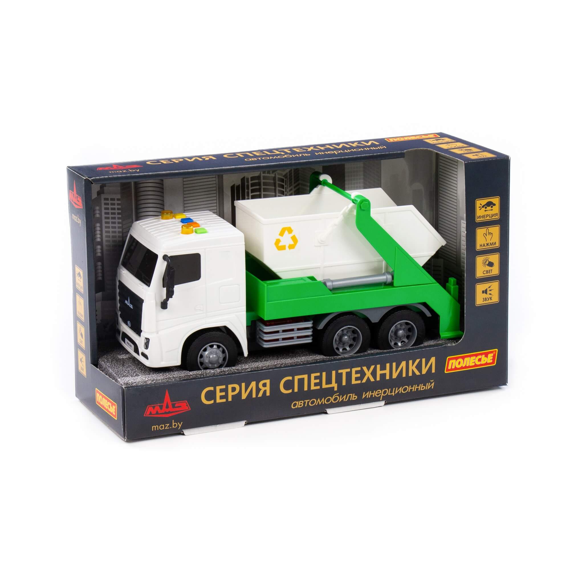Автомобиль коммунальный МАЗ инерционный (со светом и звуком) (в коробке)