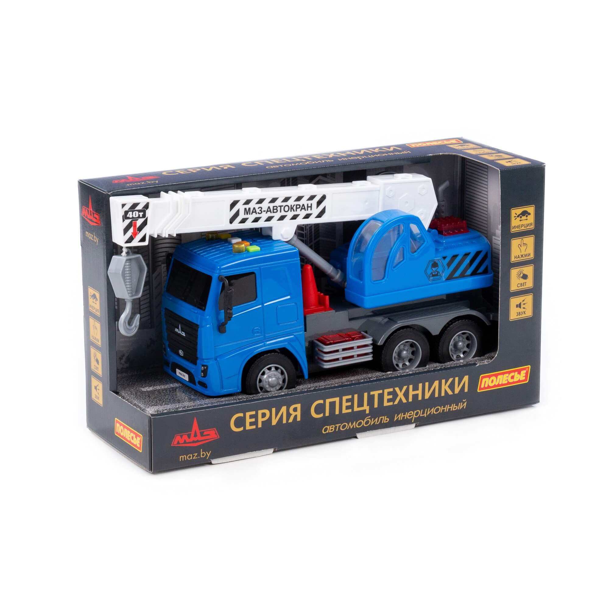 Автомобиль МАЗ с подъёмником инерционный (со светом и звуком) (в коробке)