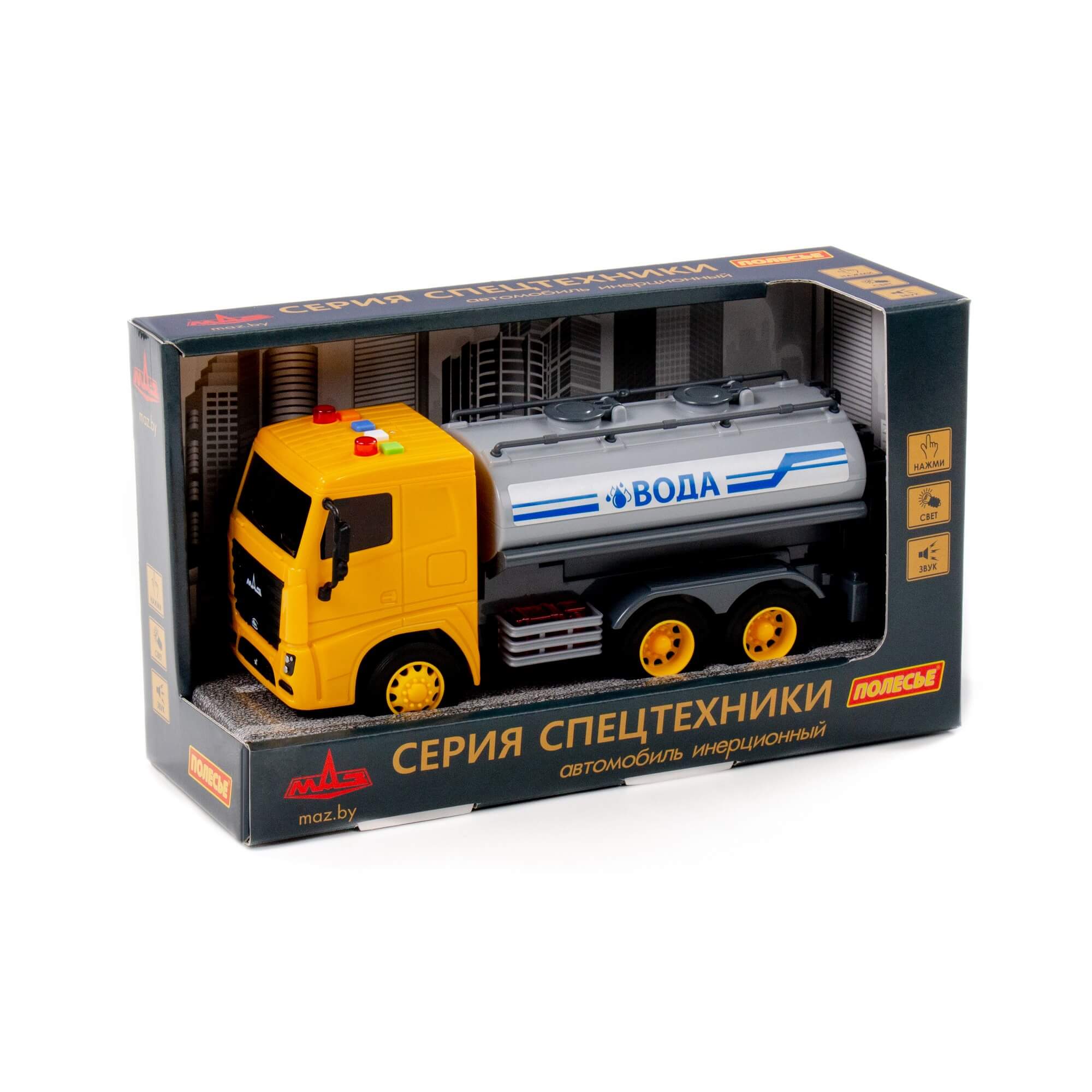 Автомобиль поливочный МАЗ инерционный (со светом и звуком) (в коробке)
