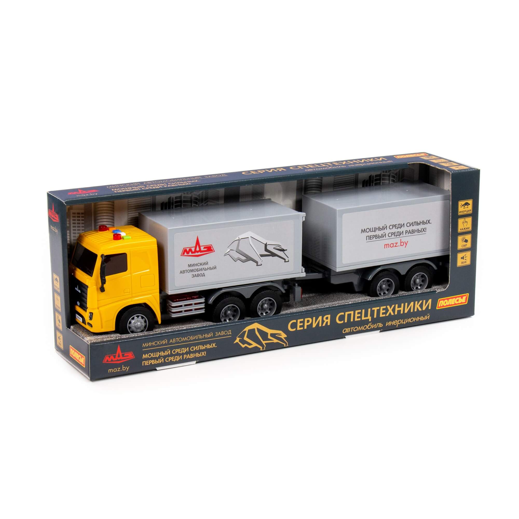 Автомобиль контейнеровоз МАЗ инерционный (со светом и звуком) (в коробке)