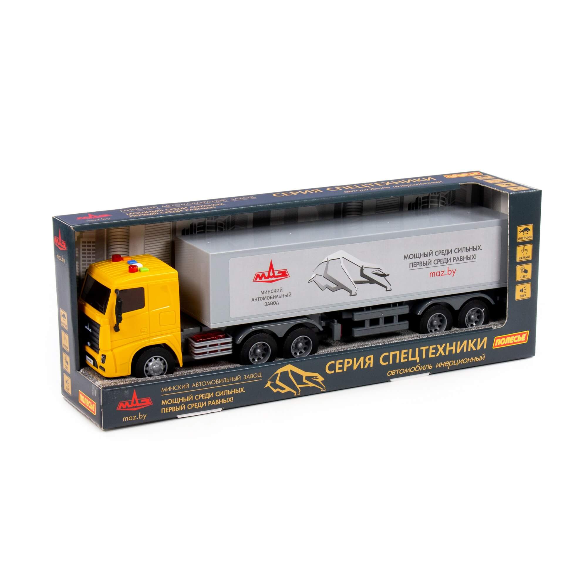 Автомобиль тягач МАЗ с полуприцепом инерционный (со светом и звуком) (в коробке)