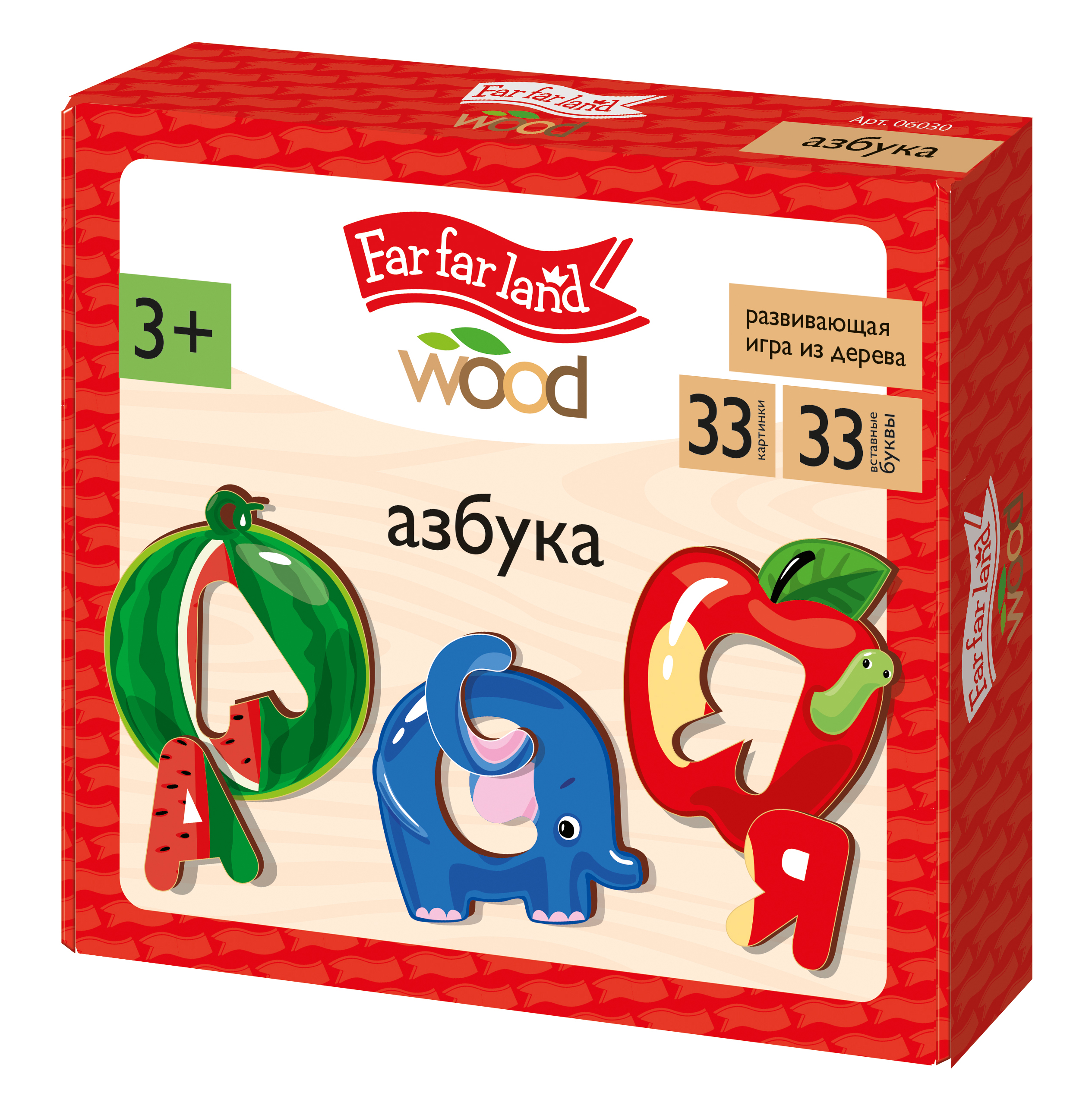 Игра-пазл развивающая Азбука деревянная Far far land Wood (картонная коробка)
