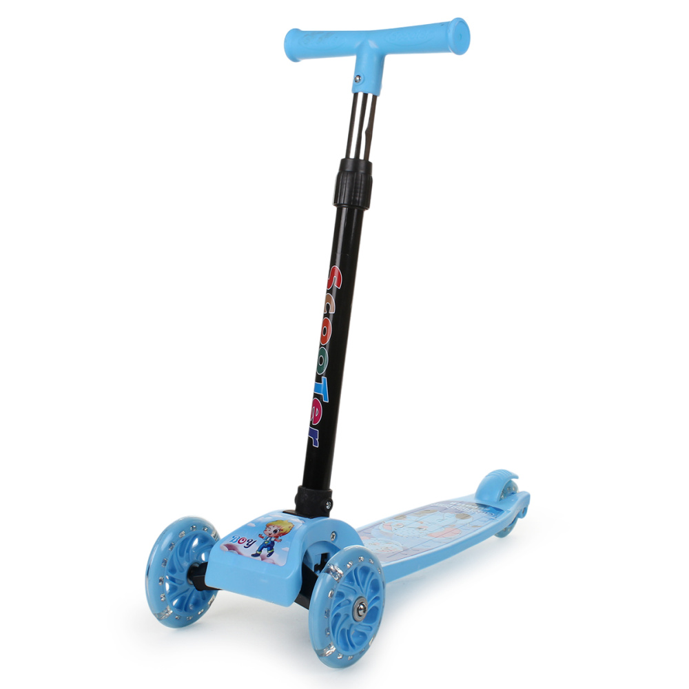 Самокат 3-х колесный 54*20*70см колеса светятся,голубой, руль регулир. OBL-29
