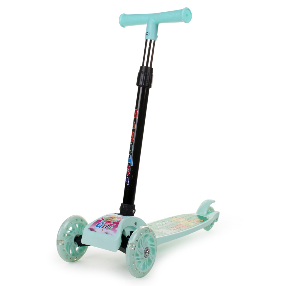 Самокат 3-х колесный 54*20*70см колеса светятся,зеленый, руль регулир. OBL-29