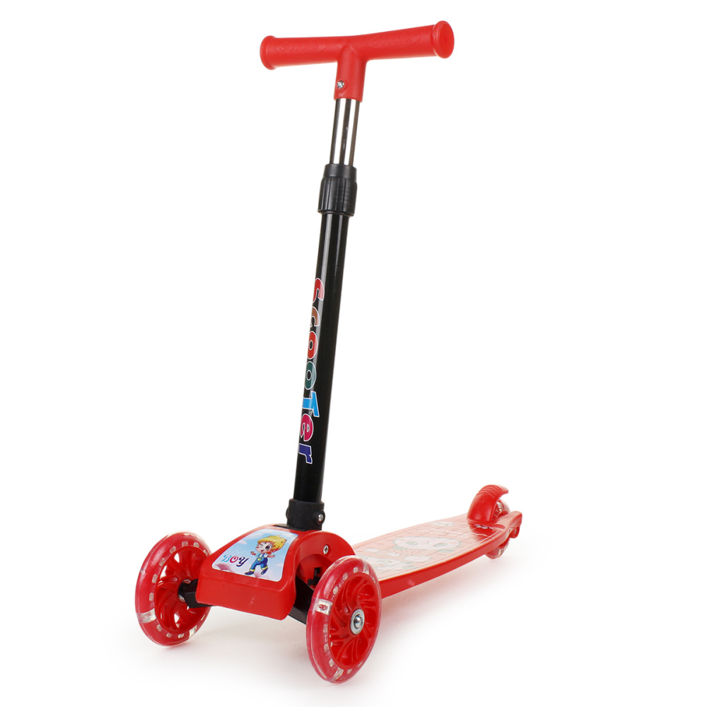 Самокат 3-х колесный 54*20*70см колеса светятся,красный, руль регулир. OBL-29