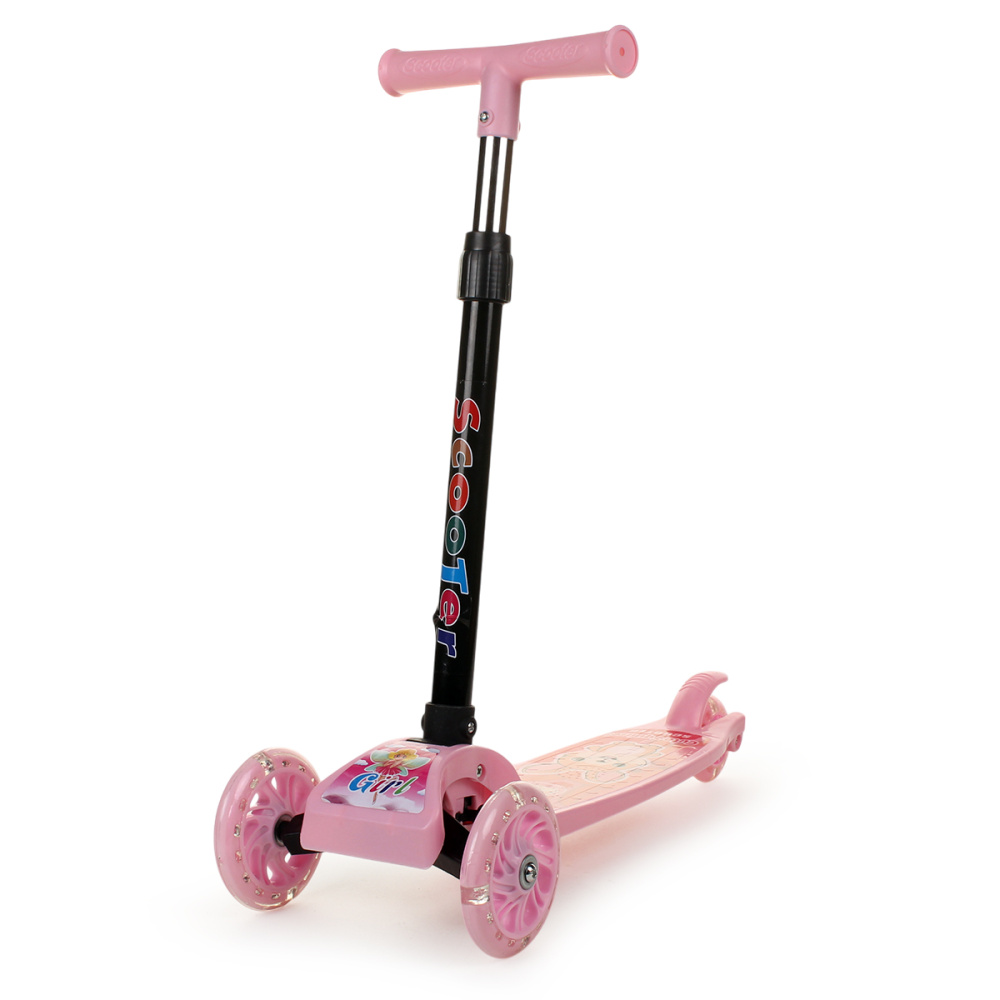 Самокат 3-х колесный 54*20*70см колеса светятся,розовый, руль регулир. OBL-29