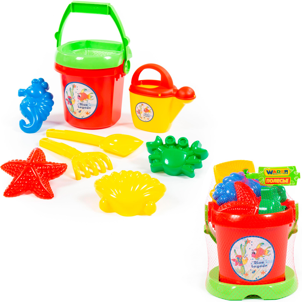 Набор №414: ведро №9, сито №9, лопатка №31, грабельки №31, формочки, лейка №10