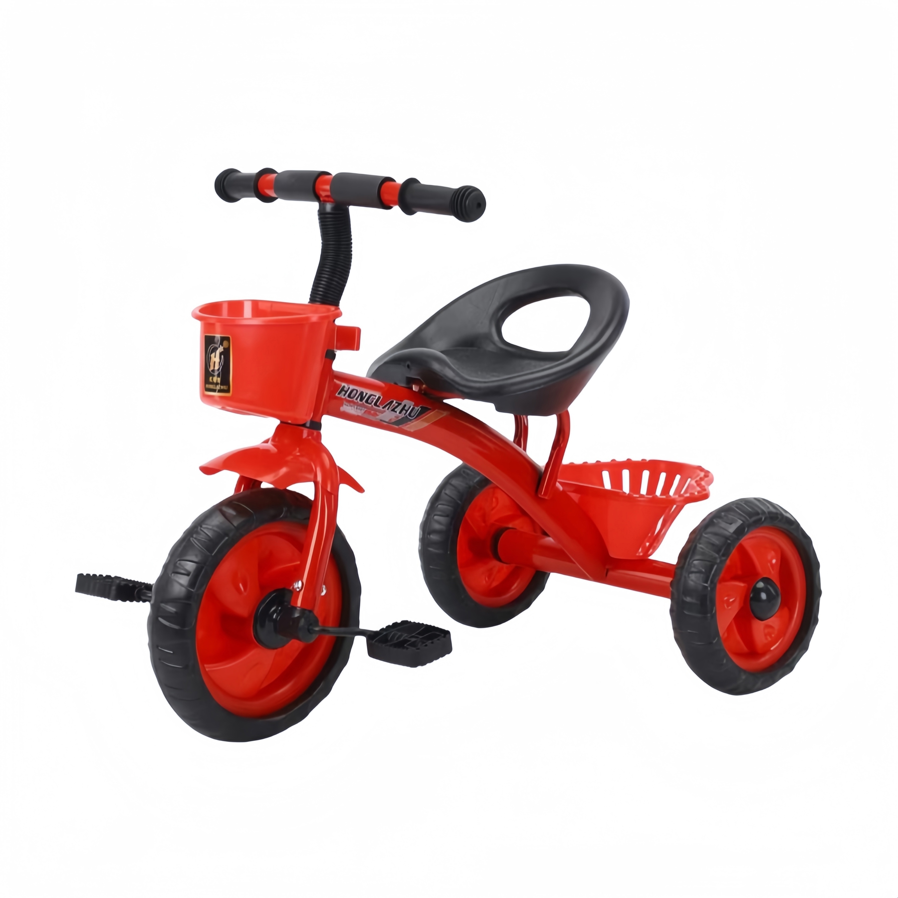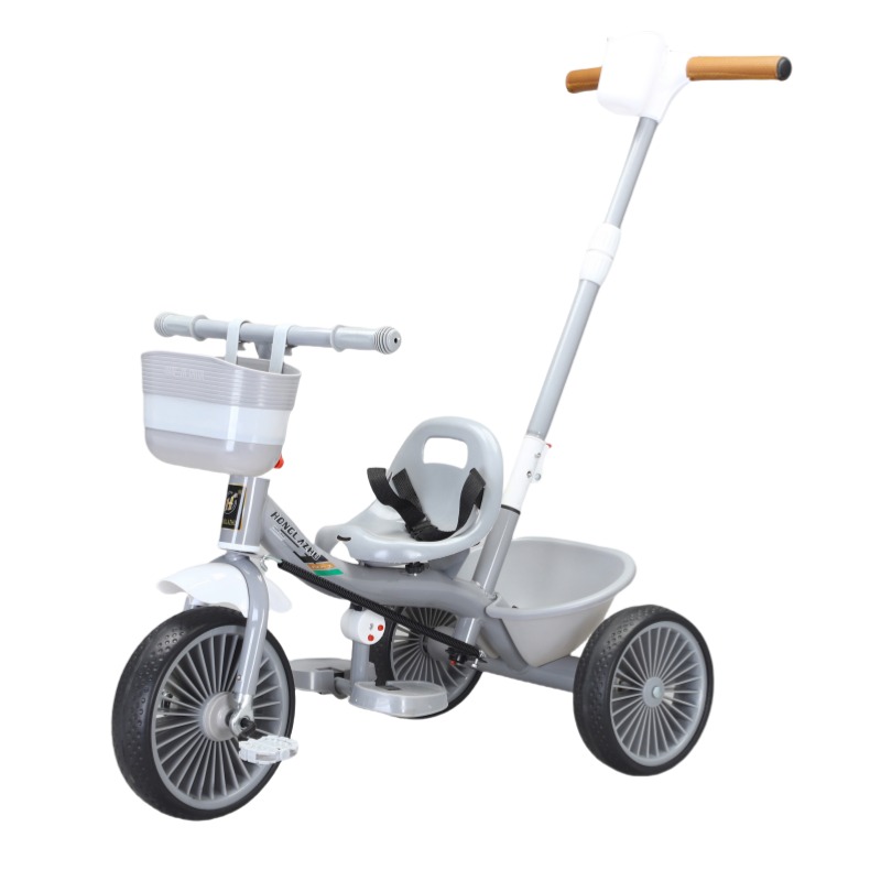 Велосипед 3-х кол. серый с родительской ручкой и ремнями безопасности + 2 корзины