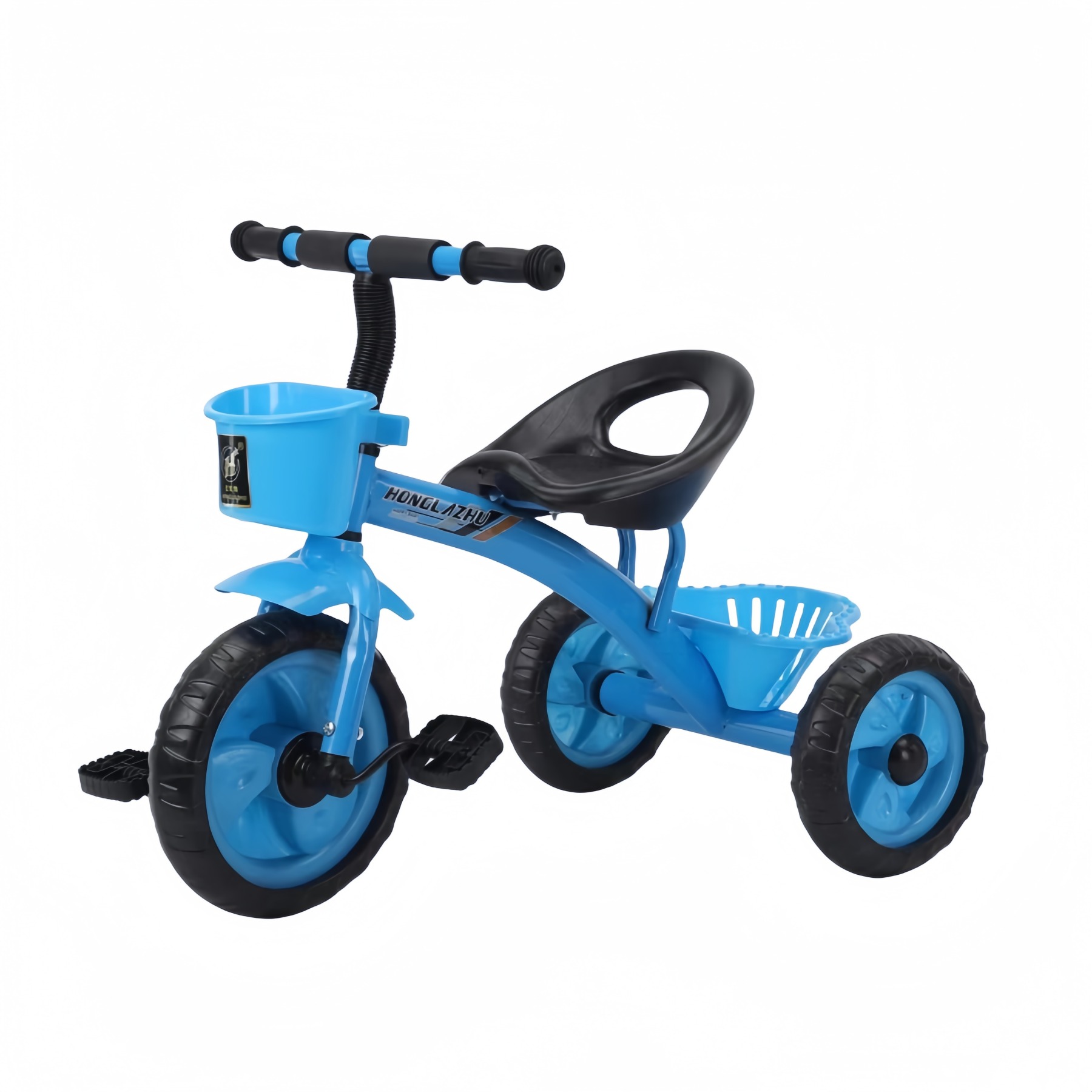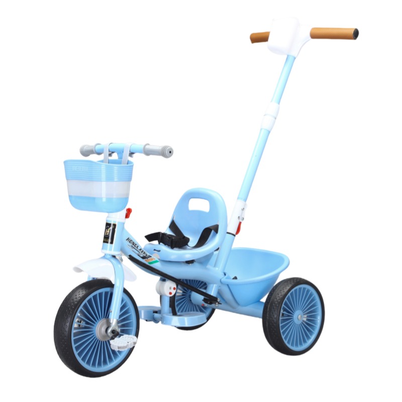 Велосипед 3-х кол. голубой с родительской ручкой и ремнями безопасности + 2 корзины