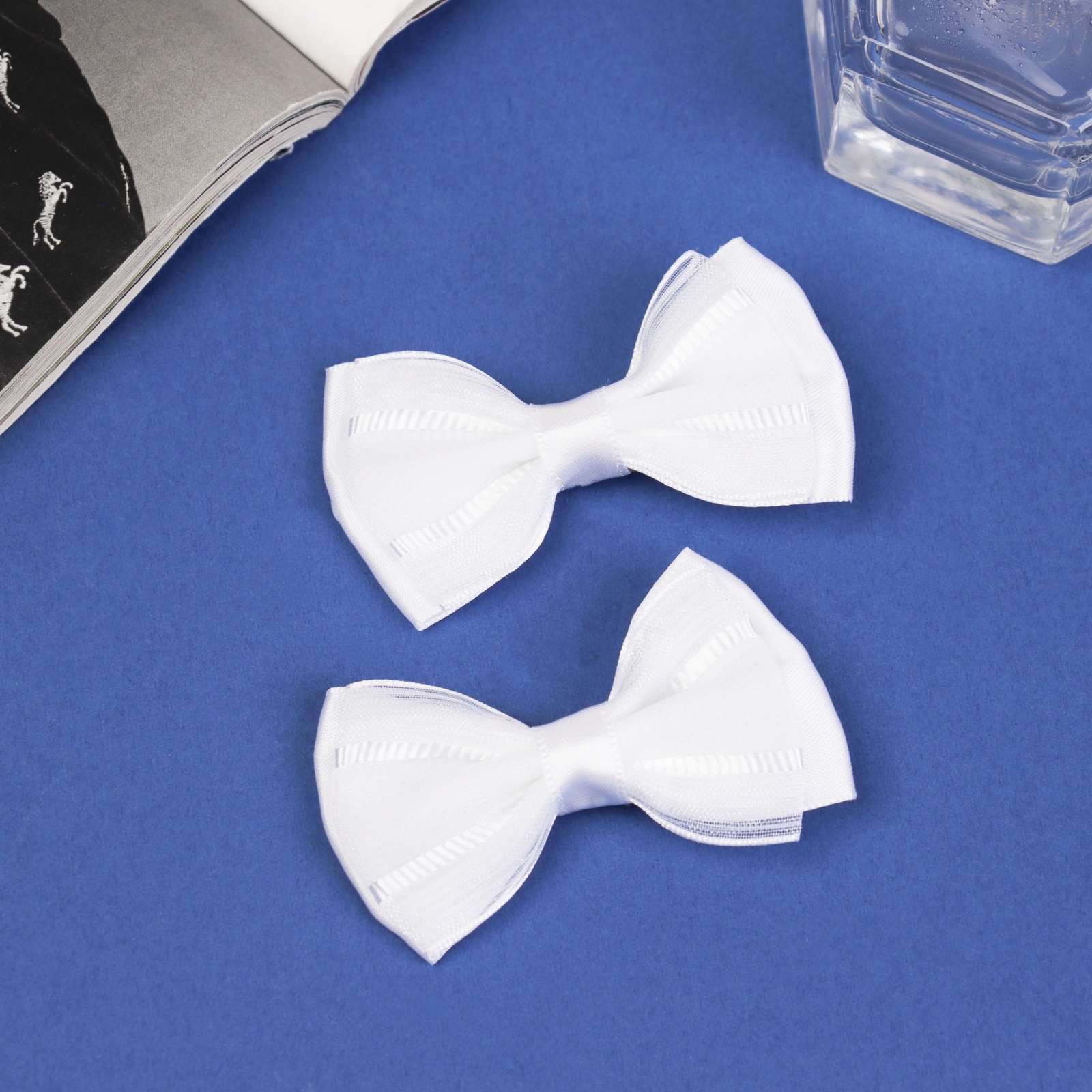 Зажимы для волос Бантик Вивиан набор 2 шт классик полосы 5.5 см белые