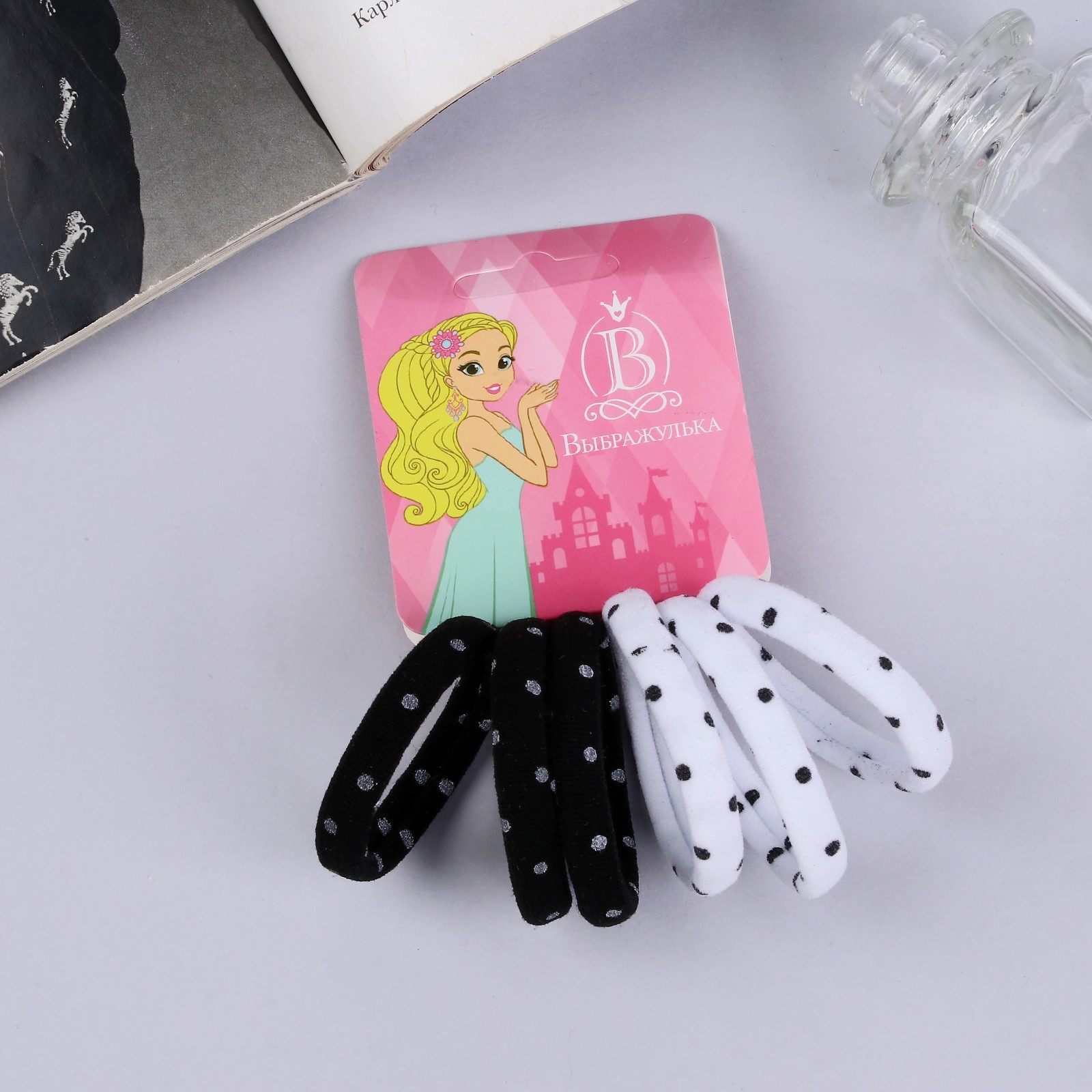 Резинки для волос Спорт набор 6 шт горох 3.8 см чёрные белые