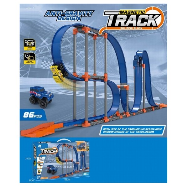 Набор Трек для гонок магнитный на бат. 86 элементов, в/к 46*7*31 см