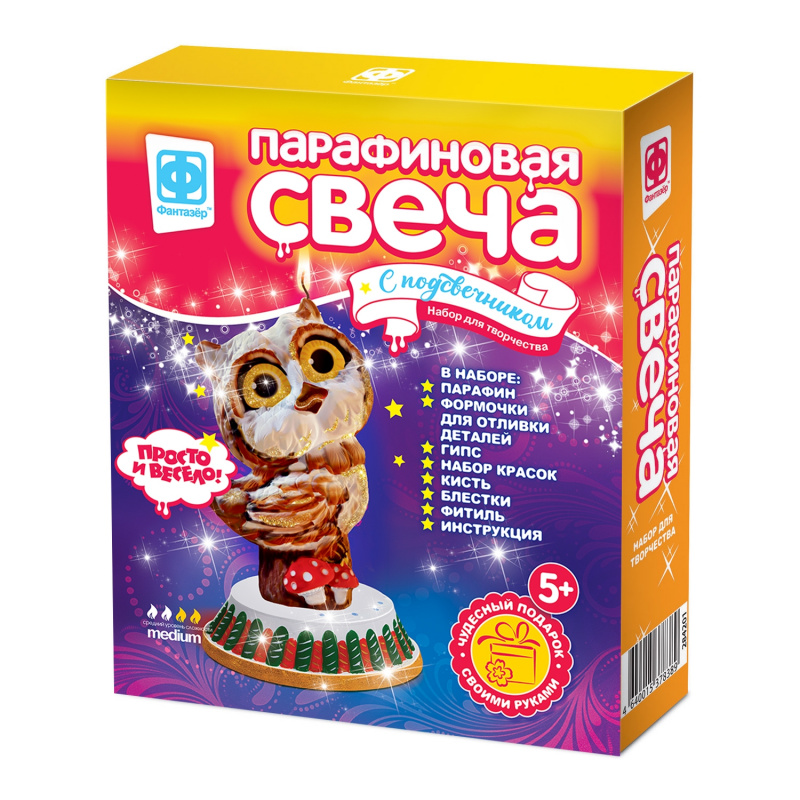 Парафиновая свеча с подсвечником СОВА