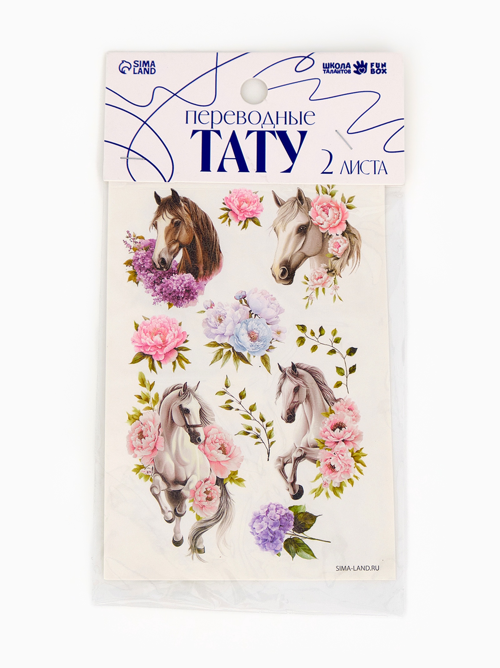 Переводные татуировки детские Лошади с цветами 2 листа