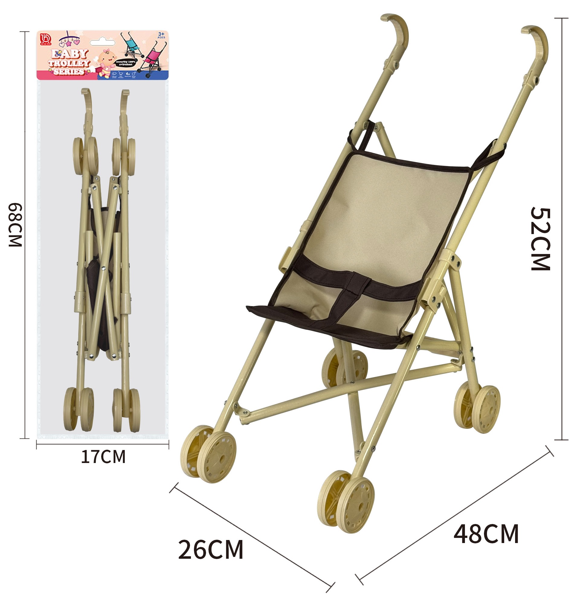 Коляска для кукол трость метал. 910-22 в пакете 17*68