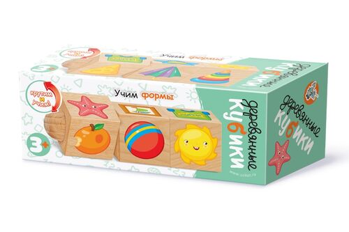 Кубики деревянные на оси Учим формы (3 кубика)