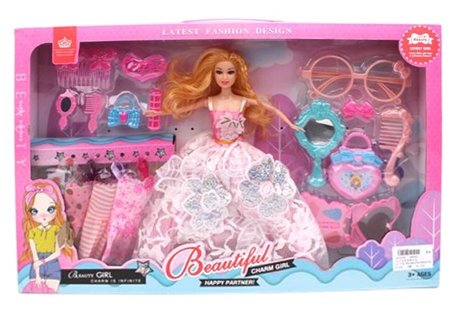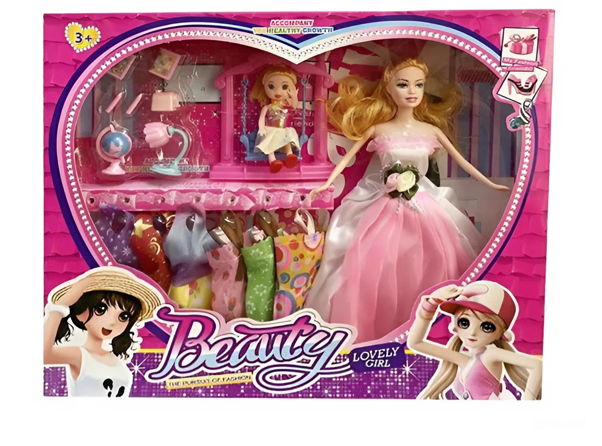 Кукла на шарнирах с ребенком и аксессуарами, кор.