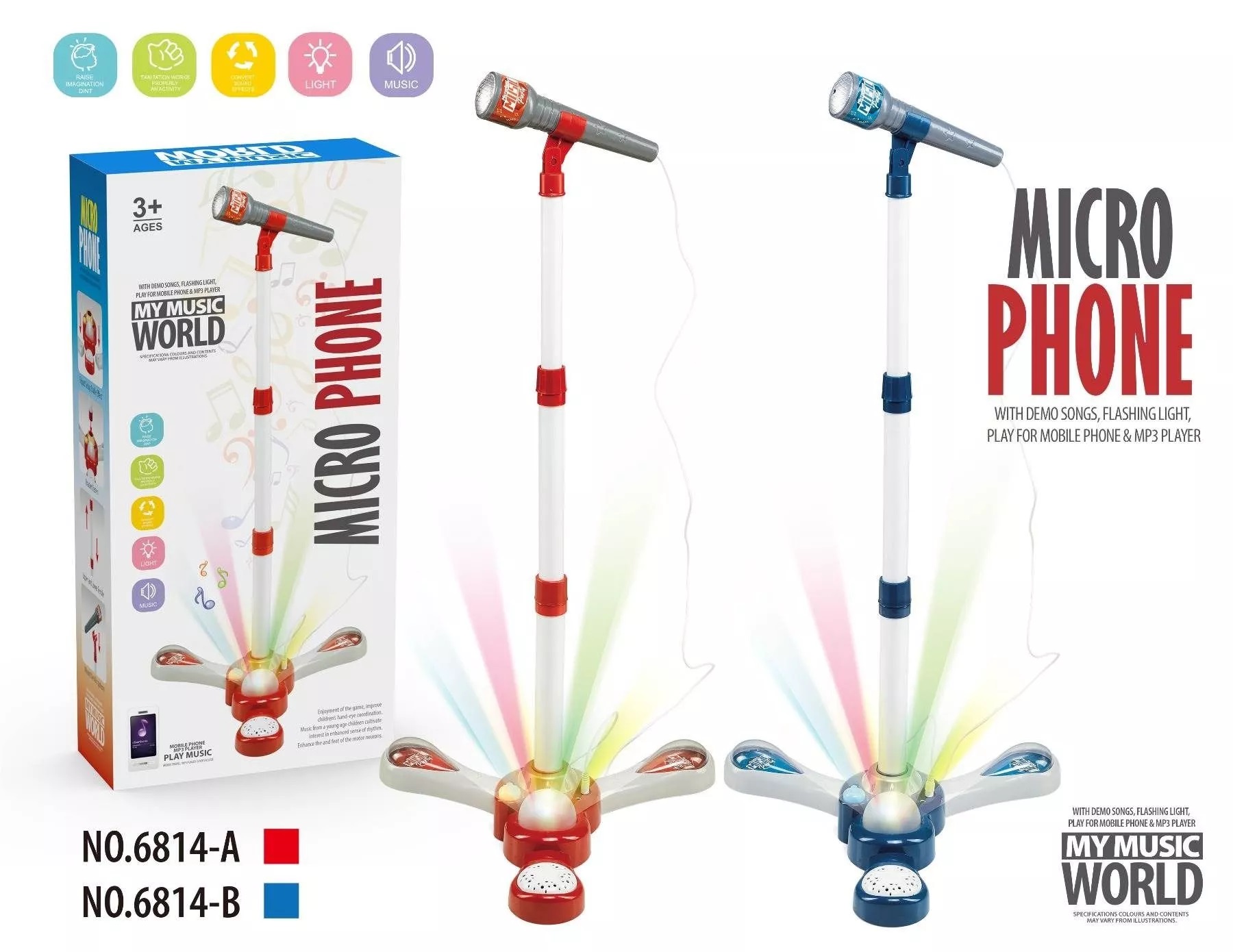 Микрофон на стойке, отключаемый телефон, MP3 коробка 34,9*22,4*7,1