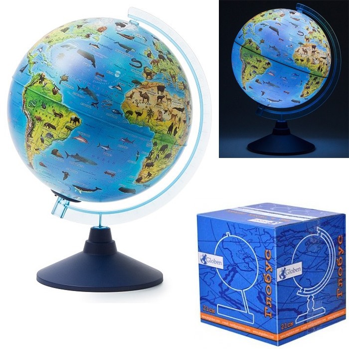 Глобус Зоогеографический с подсветкой 250мм от батареек