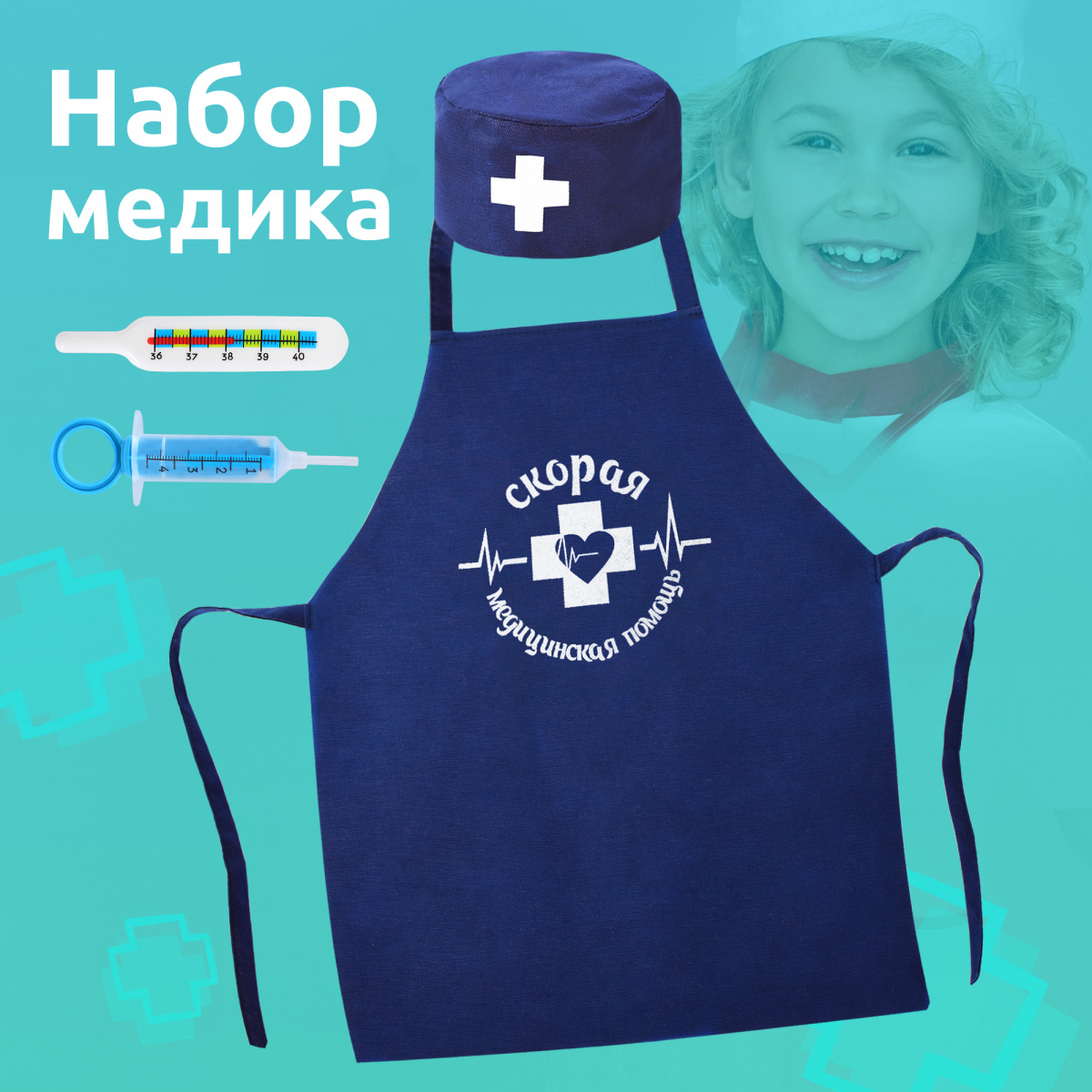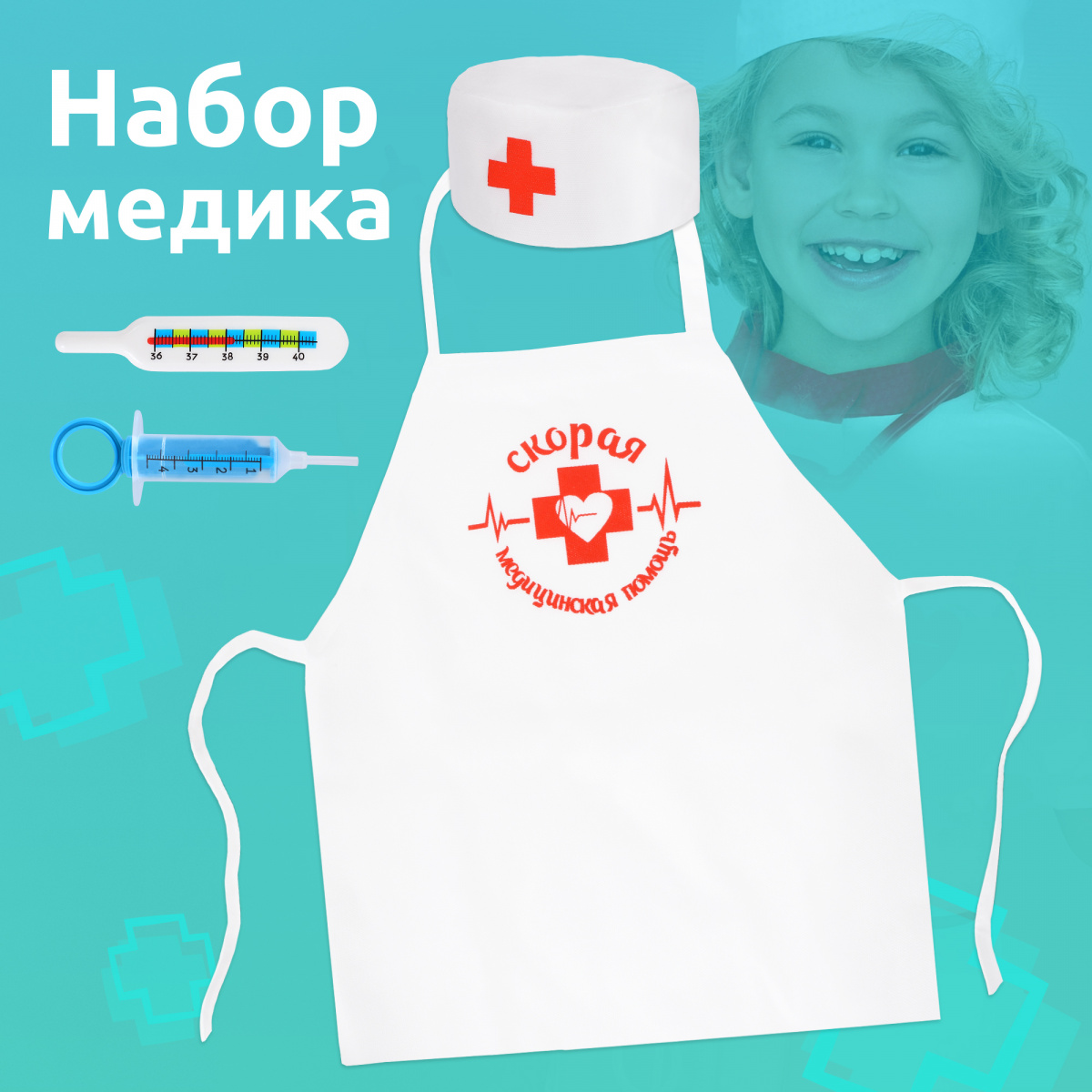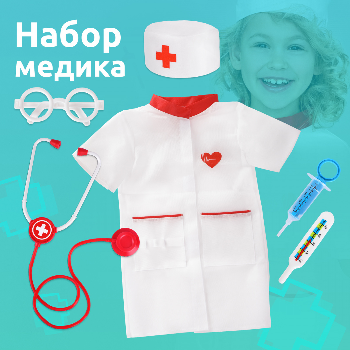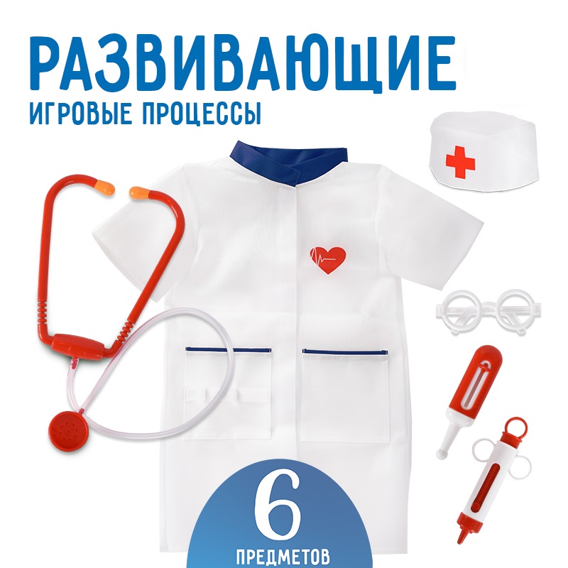 Набор Доктор 6 предметов: халат, колпак, стетоскоп, очки, шприц, градусник