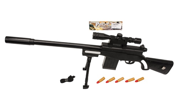 Автомат с лазер прицелом с глушителем съемн. приклад и магазин 9000 в пак