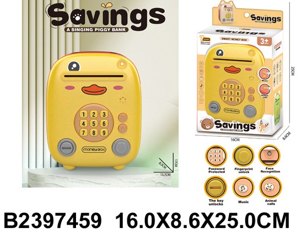 Копилка пласт. Сейф ушками код. замок звук АА микс 19,5х14х26 см