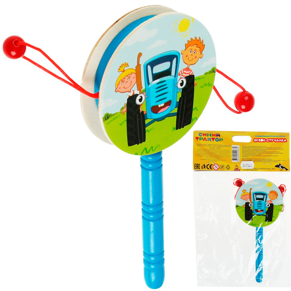Игрушка деревянная Буратино бубен-стучалка Синий Трактор 371886
